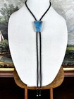 New Navajo Sterling & Mohave Turquoise Bolo Tie D Benally 34 Grams 2.25" X 1.75"