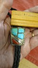 Beautiful Old Pawn Navajo Handmade Sterling Silver & Turquoise & Coral Bolo Tie