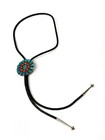 Native American Navajo Turquoise Bolo Tie Large Sterling Silver Ties Zuni # V