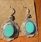 Vintage Native American Sterling Silver Turquoise Dangle Earrings Signed Eq