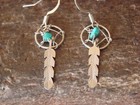 Navajo Sterling Silver Turquoise Dreamcatcher Dangle Feather Earrings By Yazzie