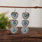 Boho 925 Sterling Silver Vintage Tibetan Tibet Turquoise Dangle Hook Earrings