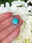 925 Sterling Silver Turquoise Sunburst Pendant For Necklace 24mm(0.94")/11mm