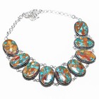 Spiny Oyster Copper Turquoise Gemstone Chain Elegant Necklace Jewelry 925 Silver