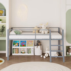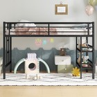 Twin Size Low Loft Metal Bed W/2-tier Storage Shelfes & Ladder Kids Teens,black