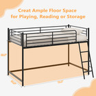 Twin Metal Loft Bed For Kids W/ Storage Shelf, Ladder, Guardrails, Black
