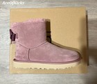 Women's Ugg Mini Bailey Suede Bow Boots New In Original Box Sz 7.0 Pink Dawn