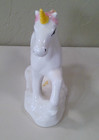 1990s Porcelain Unicorn Figurine White Rainbow Mane Fantasy Decor