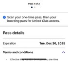 2 United Club One Time Pass Expires November 2026 Email Delivery