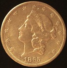1865-s $20 Liberty Head Double Eagle .900 Fine Gold Coin From San Francisco Mint