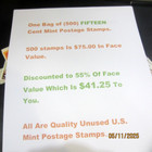 (500) Fifteen Cent Mint Postage Stamps* Buy At 55% Of Face Value *stk B