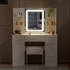 Vanity Makeup Dressing Table Set W/stool 4 Drawer & Led Mirror Wood Desk White