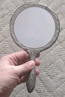 Antique Vintage Victorian Floral Silver Vanity Hand Held Mirror Heavy