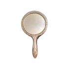 Vintage Hand Held Beauty Vanity Mirror Silver Tone Victorian Floral Design
