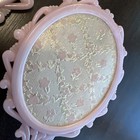 Vintage Victorian Ornate Handheld Mirror Flower Designs Pink Handle