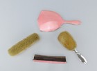 Lovely 4pc Pink Enamel Sterling Silver Vanity Dresser Set Mirror Comb Brushes