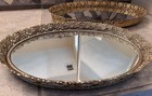 Vtg Vanity Tray Set Of 2 Oval Gold Tone Floral Filigree Mirror Hollywood Regency