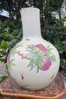 12" Old Chinese Dynasty Porcelain Mark Famille Rose Nine Peaches Tianqiu Vase