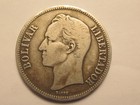 1888 Venezuela 5 Bolivars .900 Silver Coin