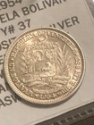 Venezuela 1936 Silver Quarter Bolivar 25 Centimes Au Uncirculated Coin