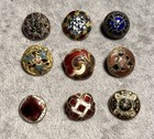 Victorian Hand Painted Metal Enamel Antique Button Group Of 12 Buttons 3/8”9/16”