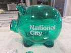 Vintage Clear Purple Plastic National City Coin Pig Piggy Bank Advertising