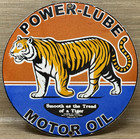 Vintage Power Lube Motor Oil Porcelain Sign Tiger Gas Station Pump Plate Service