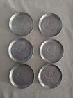 Vintage 1970 Coin Shaped Aluminum Metal Coasters Embossed Set Of 6 From Holland!