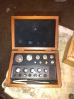 Nice Complete Vintage Brass Balance Scale Weight Set In Wooden Box Worth-a-look
