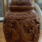 Vintage Antique Carved Wooden Flower Bali Tropical Floral Vase Art Boho