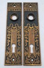 Pair Antique Victorian Eastlake Ornate Backplates Arcadia Set Door Plates #e5