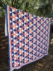Americana Quilt Cottage Cotton Red/white/blue Handmade Vintage July 4th 40x58”