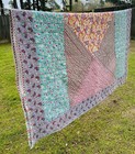 Handmade Patchwork Quilt Cream Green Pink Floral Cotton Vintage Retro Bedding