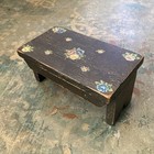 Vintage Wooden Stool Primitive Floral Crackle Finish Plant Stand Table Riser