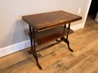 Vintage 1946 Two Tiered Mahogany Table With Edge Marquetry