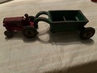 Vintage Antique Cast Iron Small Toy Tractor 4” Arcade Red Paint Farmer