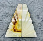 Vintage Onyx Marble Bookends Pair Art Deco Style Stone Book Ends