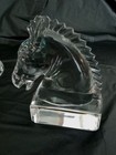 Vintage Heisey Glass Crystal Horse Head Bookends Pair - Elegant Set Of Art Glass