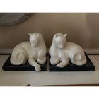 Vintage Pair White Stone Siamese Cats Black Marble Art Figurine Book Ends Read