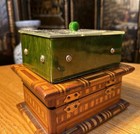 2x Vintage Green Black Bakelite Hinged Box Community Plate Art Deco Modernistic