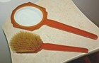Vtg. Lg Celluloid Bakelite Green/yellow Art Deco 14"hand Mirror 11" Brush Set Ec