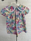 Vtg 1950s Baby Girl Toddler Floral Print Dress Embroidered Collar Pearl Buttons