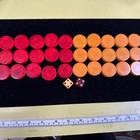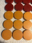 30pc Vtg 1-1/2 X 3/8 Bakelite Backgammon Swirled Red Butterscotch Chips 437.4gr