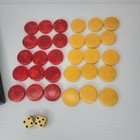 Vintage Bakelite Backgammon Marbled Red (13) Butterscotch (15), Dice, ‘64’ Die