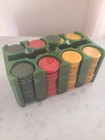Bakelite Poker Chip Caddy & Swirl Chips Marble Catalin Green Swirl Vintage