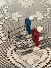 3 Vintage Barclay Lead Figures Skiers Male In Orange Females Pink & Blue Read*
