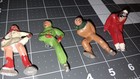 Set Of 4 Vintage Barclay Skaters Christmas Figures Lead Orange Blue & 2 White