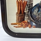 Vintage German Metal Beer Tray Decorated Beer Stein German Helmet Pretzels Read