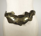 Vintage Brass Corset Belt Hammered Brutalist Avant Garde Leaves Pattern 29-32" M