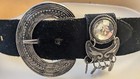 Vintage Chunky Statement Metal Buckle 28" Belt. Faux Suede. Length 34". 2" Wide.
